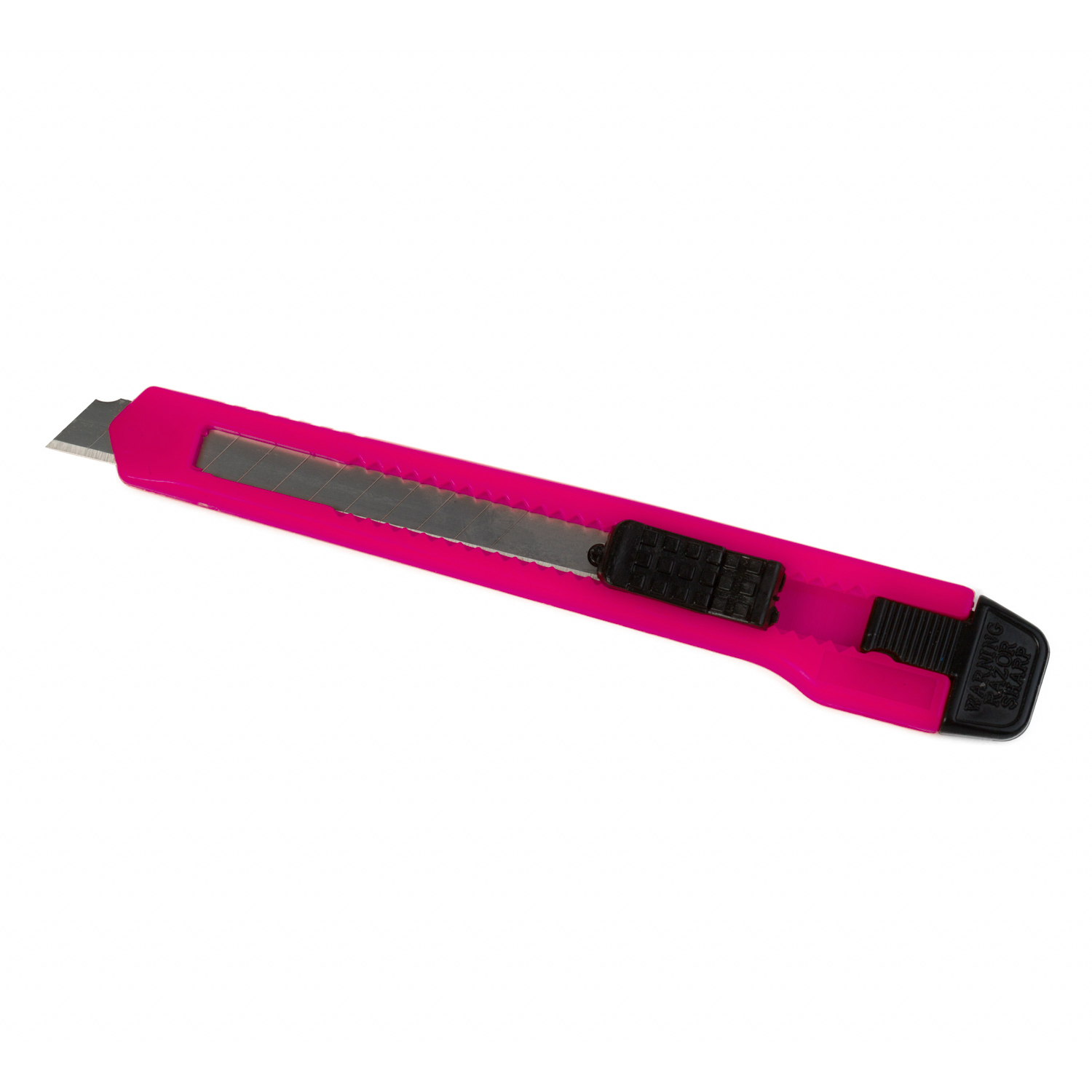 Utility knife with manual lock and 13 razor sharp, snap-off blades. Blade retracts for safe storage.